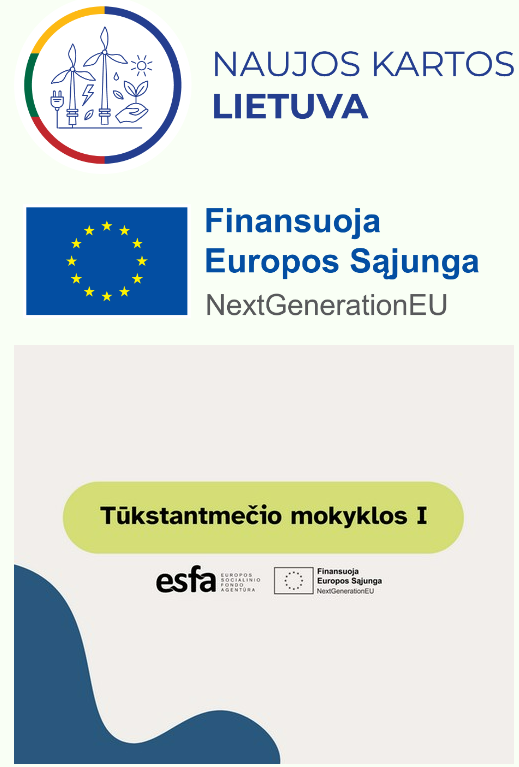 Projektas „Tūkstantmečio mokyklos I“ vykdomas pagal 2021–2030 m. plėtros programos valdytojos Lietuvos Respublikos švietimo, mokslo ir sporto ministerijos Švietimo plėtros programos pažangos priemonę Nr. 12-003-03-01-01 „Įgyvendinti „Tūkstantmečio mokyklų“ programą“. Projektas finansuojamas Ekonomikos gaivinimo ir atsparumo didinimo priemonės (EGADP) bei Lietuvos Respublikos valstybės biudžeto lėšomis.