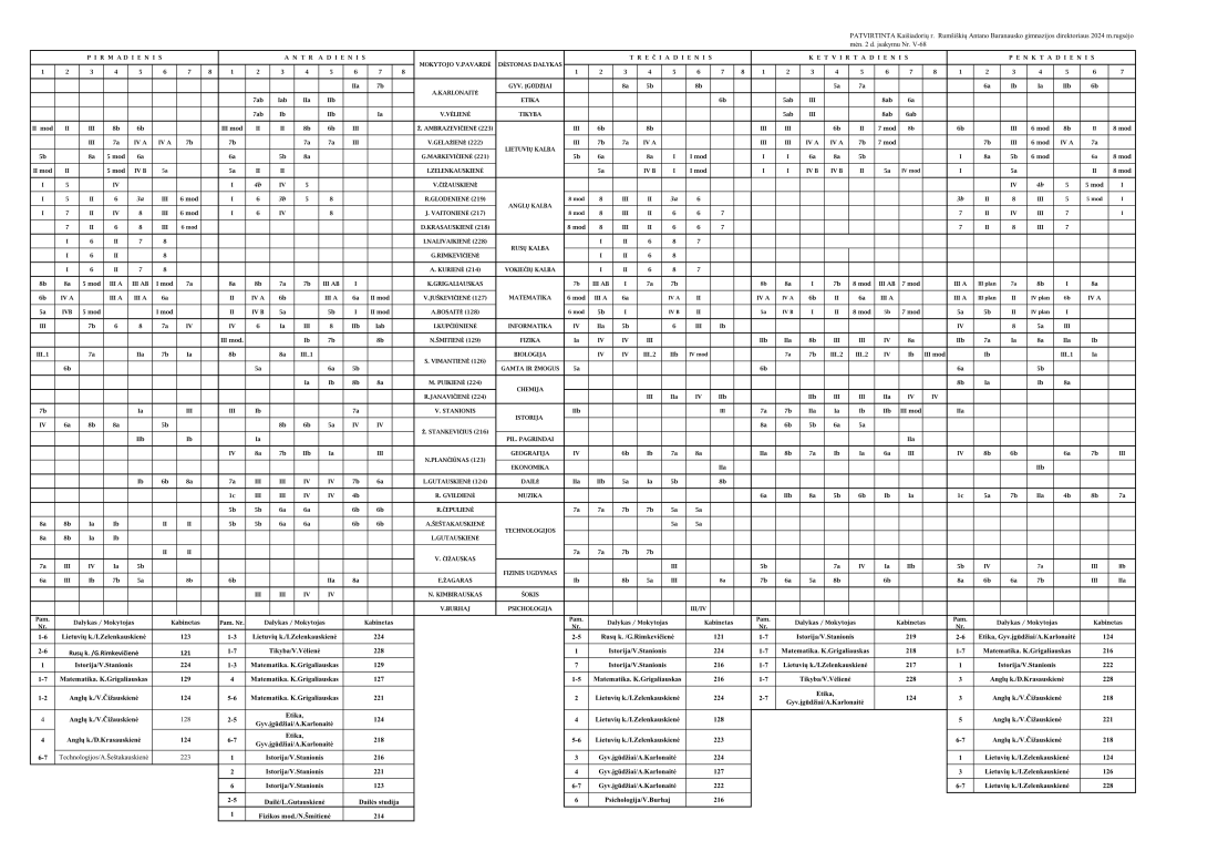 Pamokų tvarkaraštis 5-8, I–IV kl. 2024-2025 m.m.